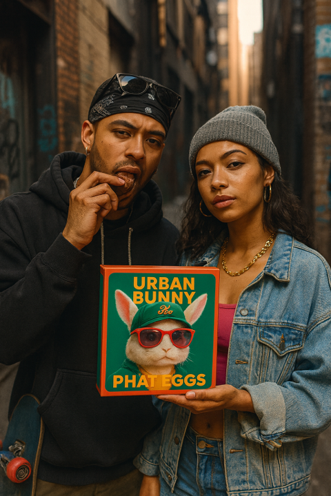 Straight outta the Underground hip " Hop " lab, the Urban Bunny Phat Eggs are where chocolate meets culture — four-piece packs of creamy milk chocolate wrapped in pure personality.